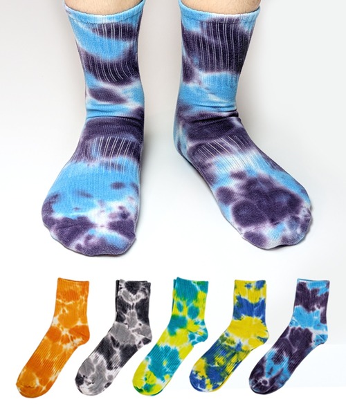 \鮮やかなタイダイ染めが魅力的な5足セットのソックス/カジュアルなスタイリングにぴったり。一足一足が個性的な染め模様で、スニーカーやサンダルのアクセントとして活躍します。ハーフ丈・ミドル丈で履き心地も快適。綿・ポリエステル・ポリウレタン混紡素材を使用し、程よい伸縮性と耐久性を実現。洗濯機で洗えるので、お手入れも簡単です。子供から大人まで幅広い年齢層に対応したデザイン・サイズ展開で、デイリーユースにおすすめ。※タイダイ染めの特性上、一点一点の染め模様や色の出方が異なります。個性的な表情を楽しめるのも、このソックスの魅力です。カジュアルコーデのアクセントとして、また普段使いのベーシックアイテムとしても重宝する一品です。・セット内容:5足セットで、マルチカラー展開(イエロー、グレー、ターコイズ、オレンジ、パープル系)の5カラーセットです。-----・サイズ展開X-SMALL: 15-19cmSMALL : 19-22cmMEDIUM : 22-25cmLARGE : 25-27cm-----
