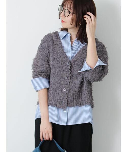 ふんわりとしたチュールフリンジのデザインが華やかなムードを放つカーディガン。ざっくりと切り込まれたVネックになっており、きれいめな印象を与えます。ウエストラインを高く見せる短めの丈感がポイント。休日のお出かけコーデに重宝したいアイテムです。※商品画像は、撮影環境やお客様のご利用のPC・スマートフォンのモニター環境などにより実物と色味に差異がある場合がございます。