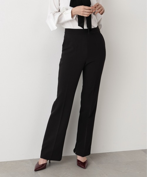 すっきりとしたシルエットを叶えるダブルクロス素材のフレアパンツウエストまわりをコンパクトに仕上げ、脚のラインを美しく見せるシルエットが魅力です。裾内側に配したファスナーを開けるとスリットのようなフレアシルエットが生まれ、スタイリングにシャープな表情をプラス。 洗練された印象のブラックと、スタイルに華やぎを添えるレッドの2色展開です。 【素材説明】 独特のハリ感と構築的なシルエットを生み出すダブルクロス素材。 薄手で軽やかな仕上がりながら、二重織ならではの程よい膨らみと構築性を備え、シルエットを美しく引き立てます。すっきりとした表面感に加え、2WAYストレッチによる快適な着心地も魅力の素材です。 【商品特性】 ショート丈裏地付き/ストレッチあり/前ポケットx2、飾り後ろポケットx2/左脇ファスナー開き/後ろ中心ウエストにゴム入り/かかとくらいの丈◆お買い物をよりお楽しみいただくために◆・「商品のお気に入り登録」で完売カラーの再入荷やラスト1点、セール通知を受け取ことができます。・「ブランドのお気に入り登録」で新商品の入荷情報など、いち早く受け取ることができます。