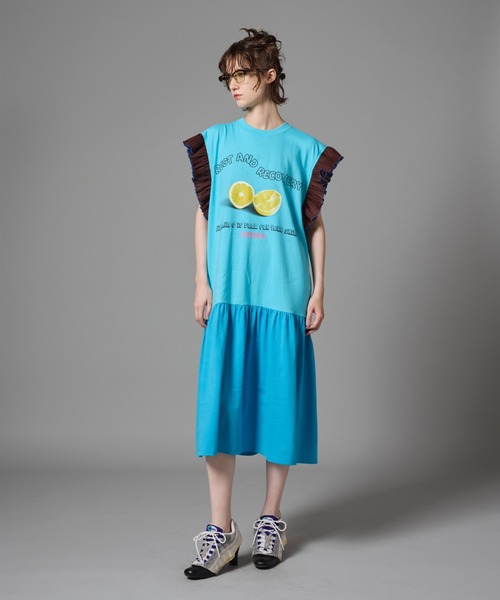 NON TOKYO フリルパーツとTシャツをドッキングさせたワンピース。ドレッシーなフリルをデイリーユース出来るTシャ ツと組み合わせたデイリーウェアです。 着丈は長めで、ノースリーブに付いたフリルが二の腕を隠して細見え効果があり、今期はフルーツ柄のグラフィックがプリントされています。 NON TOKYO・・・2014年春夏COLLECTIONより、NON TOKYOをスタート。「IN TOKYO」をテーマに大人の女性の為のストリートウェアを展開している。 【お買いものをお楽しみいただく為に!】 ▼商品のお気に入り登録完売カラーの再入荷通知や、ラスト1点の通知、セールの通知も受け取ることができます。 ▼ブランドのお気に入り登録新商品や再入荷など、いち早くブランドのお得な情報を受け取ることができます。