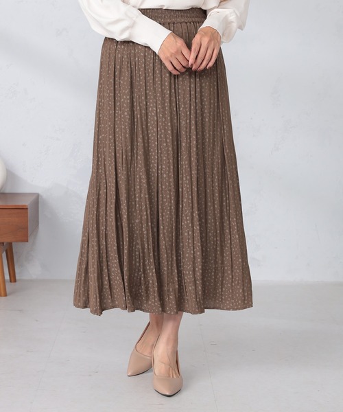 豊かな表情が美しいロングスカート 【機能/素材】 装いに華やぎを添えてくれる、レオパード柄のジャガード生地を採用。 わずかな光沢感が上品な佇まいの1枚です。 【デザイン】 動くたびに繊細に揺れる、細めのプリーツスカート。 光のあたり具合で柄の見え方が変わる豊かな表情が魅力です。 【お勧めスタイリング】 遠くからは無地見えする落ち着いたデザインは、オフィスコーデにもお使いいただけます。 ゆるめトップスと合わせれば、カジュアルな印象にもアレンジできます。 【GALLORIA/ギャロ―リア】 ベーシックだけじゃ物足りない、ほどよくトレンドを取り入れ シーンレスにきちんと見える。 そんな願いを叶えてくれる、いまの空気感をまとった大人のデイリー服「GALLORIA」 買いやすいプライスで、バリエーション豊富に揃う ライフスタイルに寄り添うコレクションを展開します。 ◆Instagram:@galloria.sns 公式Instagramでは最新情報を定期的に更新中!フォローしてお得な情報をゲット! ■商品のお気に入り登録のおすすめ■ 完売カラーの再入荷通知、ラスト1点、お得なクーポンやお値下をお知らせします。 ■ブランドのお気に入り登録のおすすめ■ 新商品や再入荷のお知らせ等、ブランドのお得なクーポンやお値下をお知らせします。