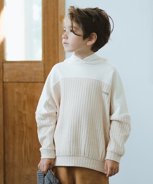 ■ポイント変わり織りニットと裏毛素材の異素材同士を組み合わせたフーデッドトレーナーですこっくりとした丸みのあるシルエットが特徴カジュアルになりがちなフーデッドデザインですが光沢感のある変わり織りが上品な仕上がりになっていますシルエットは自然な落ち感があり、季節の変わり目にちょうどいい厚さの素材感胸元の織ネームもさりげないアクセントにフード部分は厚みを出さないようにしているのでアウターを着た時にごわつかず着まわしのきくアイテムです【おそろいシリーズ商品一覧】ベビー男児:01-5439-308 【おそろい】異素材切り替えカバーオール-----透け感:なし伸縮性:あり※モデル着用写真についてはイメージの為、実際の 商品とカラー や仕様が異なる場合がございますので、 商品画像をご覧ください。※商品の色味につきまして、お客様のお使いのPCの モニター環境により実際のカラーと画像の色味が 違って見える場合が御座います。 予めご了承の上、ご注文下さい。※店頭・外での撮影画像は光の加減で、 実際の商品より明るく見える場合が御座います。