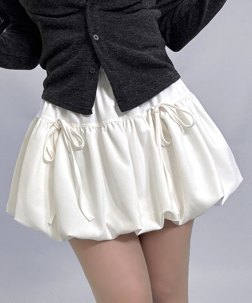 立体感のあるバルーンシルエットが目を惹くミニスカート。 程よく張り感のある素材と裾のリボンディテールが、ガーリーながらモード感も演出してくれます。 ウエストはオールゴム仕様でストレスフリーな穿き心地。 コンパクトなトップスを合わせてバランスよく仕上げたり、オーバーサイズのニットを合わせて旬なシルエットを楽しむのもおすすめです。 ■ カラー ブラック、グレー、ホワイトの3色展開 【生地感】 -------------------------- 裏地:あり(インナーパンツ仕様) 透け感:ホワイトややあり 生地の伸び:ややあり 光沢感:なし -------------------------- *ご覧のモニター環境や撮影環境に応じて実際の 商品の色と異なって見える場合がございます。ご了承ください。 *素材の特性を考慮して管理法留意事項を購入/着用する場合は必ずご確認をお願いします。 【商品のお気に入り登録】 お気に入りの商品やサイズ・カラーまで、お気に入りの登録をしていただきますと、 そのアイテムのセールの通知、ラスト1点になった時の通知や、完売しても 再入荷通知を受け取ることができます。 【ブランドのお気に入り登録】 新商品の発売や再入荷、タイムセール情報やクーポン発行のお知らせなど、 FOLLOWINがお届けするお得な情報を受け取ることができます♥ ▶ブランドの最新情報はinstagram【@followin】でご確認いただけます! * 注文履歴ページよりご注文いただいた商品の配送時間を確認できます。 * 他のキャンペーンにより、価格が変わる場合があります。 ※他のキャンペーンにより、期間中に価格が変動する場合があります。 ※セールは予告なく終了させていただく場合もあります。