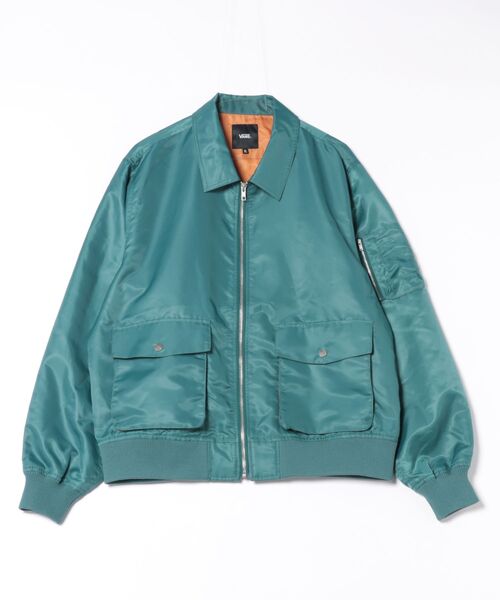 衿付きMA-1タイプのボマージャケット。 裏地にオリジナル・バブルカモ柄のヒートエンボス加工を施しました。 サイズ感は80年代のMA-1を参考にしたワイド&ショート。 腰ポケットはマチ付きタイプで、フラップを留めるドットボタンはVANSの刻印入り。 サイドから手を入れられるハンドウォーマー仕様で、手の甲側はトリコット起毛になっています。 長いシーズン活躍できるようにあえて中綿を入れない軽アウター仕様。