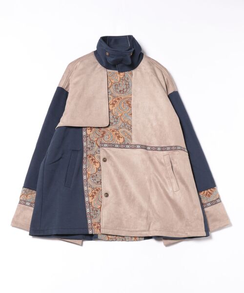 Japan Meets Folkloreトレンチコートと着物のディテールを掛け合わせた「文明開化」がテーマのメンズジャケット。裏毛裏起毛生地、カットスエード、ジャカード生地の異素材を組み合わせたパッチワークアウター。袖口やフロントのテープ使いもポイント。バックスタイルのインバーテッドタックにもオリエンタルなジャカード生地をあしらった、こだわりのデザインです。個性的なフォークロアスタイルに◎ユニセックスでご着用いただけます。・両サイドポケット付き。・広めの袖口はタブでシルエット調整可能。※こちらの商品は1点1点職人による手作りとなります。その為、生地の取り方により柄の配置や形・色合いなど若干異なる場合がございます。(画像は一例です。)あらかじめご了承ください。※屋外での撮影画像は、光の当たり具合で色味・カラーが違って見える場合がございます。商品のカラーは、スタジオ撮影の画像をご参照ください。Amina Collection Co.,LTD.