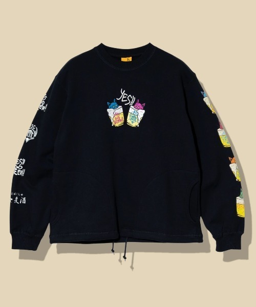 ☆go slow caravan☆ 空紡糸裏毛 猫と麦酒 ヘムスピンドル クルースウェット 裾口をスピンドル仕様にしたベーシックシルエットのクルーネックプルオーバー。 一般的な裾リブ付きのアイテムに比べ、裾にリブの厚みがないため インナーにした時のゴワツキがなく、裾スピンドルでシルエットの変化も楽しめます。 前身には、ボディカラー毎に異なる刺繍、袖はプリントの猫と麦酒を配置。 サイドポケット付きも嬉しいポイントです! 猫と麦酒のフーディバージョン(702591005008)もご用意ございます。 ■空紡糸裏毛 オリジナルで編みた立てた定番の綿100%ヘビーウエイト裏毛素材。 糸や編立のテンションにも拘り、表は空紡糸らしいガシッとした肌触りでありながら、 裏のパイル面には太い裏糸を使用しているので空気を多く含みフワッと柔らかい着心地を実現。 使い込むほどに風合いの増す生地。 クラシック感のある長めのリブや3本針で丈夫な縫製などこだわりのディテールも取り入れた、 長くご愛用いただけるアイテム達に使用しています。 ※着用、お取り扱いの際は、商品についている品質表示とアテンションタグを必ずご確認下さい。 お買い物をさらにお楽しみ頂くためにブランドや商品のお気に入り登録がおすすめです☆ 新商品・再入荷通知、ラスト1点通知、セール通知などなどお得な情報を受け取ることが出来ます。