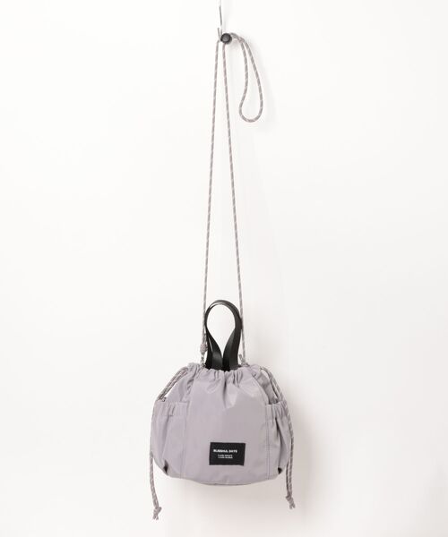 【仕様】きれいなフォルムを誇るミニ巾着のデザインは、カジュアルさと洗練された印象を両立。ショルダーストラップとハンドルが付いた2WAY仕様で、シーンに応じて持ち方を変えられます。シンプルながらもアイキャッチなラベルデザインが、スタイルに独自のエッセンスを添えます。【素材】 軽量で耐久性のあるポリエステル素材を使用し、日常使いに最適。微光沢感が、高感度な印象を演出。さらりとした手触りが心地よく、使い込むほどに愛着が増すアイテムです。機能性も考慮されており、必要なものをしっかり収納できます。 【スタイリング】 シンプルなTシャツとデニムのコーディネートにプラスすることで、都会的な印象に。さらりとしたワンピースとの相性も抜群で、デイリーユースはもちろんお出かけにもぴったりです。色味を活かしつつ、モノトーンのスタイルに合わせることで、スタイリッシュさを加速させる一品です。