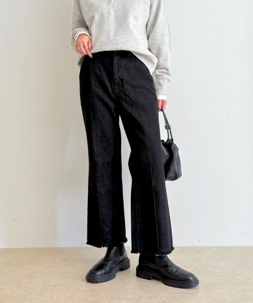 ◇fredy emue◇美脚シルエットのセンター切り替えデニム●point・センター切り替えデザインで、脚長&美シルエットを演出するデニムパンツ・裾は切りっぱなし仕様で、こなれたカジュアル感とトレンド感をプラス・程よいハイウエストと脚が綺麗に見えるストレートシルエット◎・ウエスト後ろにゴムが入っており、楽ちんな履き心地・合わせやすい絶妙なカラーリングで、トップスを選ばずスタイリング自在・大人のカジュアルスタイルにぴったりの1本です透け感:なし裏地:なし伸縮性:ウエスト後ろあり光沢感:なし洗濯:手洗い可●お取扱い上のご注意●*商品を長くご愛用していただきたいため、アテンションタグがある場合は必ずご確認の上、着用又はお取り扱い下さい。*画像の商品はサンプルとなりますので実際の商品と仕様(主にファスナー・釦等の付属品)、加工、サイズが若干異なる場合がございます。*店頭及び屋外での撮影画像は、光の当たり具合で色味が違って見える場合があります。商品の色味は、スタジオ撮影の画像をご参照下さい。*商品画像に関しては出来る限り忠実に表示出来るよう努めておりますが、お客様がご利用のモニターの設定及び特性により、実際の商品と比較し色味に若干の誤差が生じる場合があります。*製品洗い加工の商品は、多少の歪み、シワなどが見られたり、風合いやサイズ等が1枚1枚異なります。汗や雨等で濡れた時や、摩擦により色落ちし、他の衣料を汚すことがありますので(特に濃色のもの)ご注意ください。◇商品のお気に入り登録◇気になる商品は、お気に入り登録がオススメです!クーポン情報、入荷情報が、通知されるようになります。【マルチサイズとは】豊富なサイズ展開のため、「骨格ストレート/骨格ウェーブ/骨格ナチュラル」など様々な体型の方も、自分に合った1枚が見つかる新しい洋服の買い方です。「低身長~高身長」「やせ型~ぽっちゃり」など小さいサイズから大きいサイズまで、最大56サイズご用意しています。定番アイテムから、ビッグシルエットなどのトレンドアイテムまで幅広く展開中!※マルチサイズは、ZOZOTOWNのみでのお取り扱いになります。※サンプル品で撮影しているため、ボタンやファスナーなど一部の仕様が若干異なる場合がございます。【注意事項】この商品はご注文を受けてから生産を行う受注生産商品のため、発送までにお時間をいただきます。カート投入後の画面にて発送日の目安が表示されますのでご確認ください。