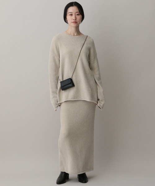 ーーー ふわっとした優しい風合いで上品シルエットのモールセットアップ ーーー 【デザインと特徴】 例年ご好評いただいているモール糸を使ったトップスとスカートのセットアップアイテム。 共地の紐もあるので、ウエストにまいてブラウジングして着るのが◎ スカートは、センターバックにべンツスリットを入れて、足さばきしやすいようにしています。 単品使いもセットアップ使いも出来る、汎用性の高いアイテムです。 【素材特徴】 光沢のある太い丸モールを使用しております。 天竺編地で仕上げました。 【スタイリング】 セットアップ着用もセパレートでツヤボトムスとの合わせも端正さが出ておすすめです。 【洗濯可否】 ドライクリーニングでのお手入れが可能です。 ーーーーーーーーーーーーーーーーーーーーーーーーーーーーーーーーー 《インフォメーション》 ◆商品のお気に入り登録 ♡をクリックで気になるアイテムをお気に入り登録していただくと、 以下の通知を受け取ることができます。 ・入荷 ・再入荷 ・ラスト一点 ・セール対象時 ◆ブランドのお気に入り登録 新商品や再入荷、セール、クーポン配布などのお得な情報を受け取ることができますので、是非ご登録ください♪ 公式Instagram >>> 【@apartbylowrys 】 おすすめアイテムや新作情報、" ショップニュース "を更新中! ぜひフォローしてみてくださいね^^