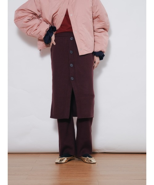 -25AW|DOLLUPOOPS-弾力ある素材が叶える、ストレスフリーな履き心地。暖かさと動きやすさを両立したニットパンツ。【Material】中肉厚のニット素材を用いたパンツ。弾力と肌触りに優れた生地感です。【Design】レイヤードスタイルに活躍するニットスカート。フロントボタンもデザインとし実用性がありシルエット調整も可能です。【Size】コンパクトな設定ながら裾はフレアに広がるシルエット。【Styling point】ジャケットやコートなど、トップにボリュームを持たせたスタイリングがおすすめ。トップスをイン・アウトのどちらでもバランス良く着て頂けます。___________________________★商品のお気に入り登録 完売カラーの再入荷通知や、ラスト1点の通知、セールの通知も受け取ることができます。是非ブランドの"お気に入り登録"もご一緒にお願い致します!!! ※画像の商品は光の反射や角度により、実物と色味が異なる場合がございます。 また、表示のサイズ感と実物は若干異なる場合もございますので、予めご了承ください。 ※着用、お取り扱いの際は、商品についている品質表示とアテンションタグを必ずご確認ください。-DOLLUPOOPS | ドールアップウップス-【Add a little essence】ライフスタイルの多様化が進む現代変わり続ける今をとらえ、自分らしい感性を大切にする女性に向けて" より美しく" 毎日を" 彩る" ワードローブを。日常に調和しつつ、" 普通 " に少しだけエッセンスをたして、他にない特別な一品を提案します。-Instagram-公式インスタグラム【dollupoops.tevalt_official】※商品のサイズ感やご質問は【dollupoops.tevalt_official】のインスタアカウントDMにて承っております。お気軽にご相談くださいませ。