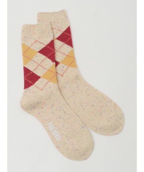 久々に登場!!クラシカルな雰囲気漂うアーガイル柄のソックスは、コーディネイトにプラスするだけですっかり秋の装いに。ネップの入った杢調の色合いは、「バラ園うさぎプリント」のように優しい穏やかな風合いに仕上がります。