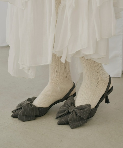 足元に華を添える、甘さとシャープさを両立した大人のリボンパンプス大胆なビッグリボンをあしらった、華やかなストラップパンプスが登場。ポインテッドトゥが足元をすっきりと見せ、大人らしい抜け感を演出してくれます。ストラップ付きで安定感があり、歩きやすさも兼ね備えています。遊び心のあるドット、洗練されたグレーストライプ、万能なブラックストライプの3色展開です。柄とカラーによって印象が変わり、幅広いコーデにマッチします。リボンは立体的に仕上げ、落ち着いたカラー展開に大人な可愛らしさをプラス。フェミニンなスカートスタイルはもちろん、シンプルなデニムとも好相性。ドットで可愛らしく、ストライプでモードに、シーンや気分に合わせて表情を変えられる一足です。