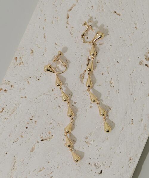 【連なるドロップパーツ】●艶やかなドロップパーツが、縦に連なるロングデザイン●しなやかな動きで、顔周りをエレガントに●横顔を美しく見せる縦長シルエット艶のある小さなドロップパーツを繋げたロングイヤリング。パーツの一つ一つが光を反射し、耳元で繊細にきらめきます。しなやかに揺れる縦のラインが、女性らしく凛とした横顔を演出します。【2025 Autumn/Winter】【25AW】※金属アレルギー症状が出にくいチタン、ニッケルフリー素材、ステンレス等を使用しています。すべての方にアレルギーが起こらないということではありませんので、万が一アレルギーの症状が出ましたら直ちに使用を中止してください。※メッキ製品(特に銀メッキ)は変色しやすいため、こまめなお手入れで防止してください。長期放置やスプレー香料などの同時使用は、特にお避けください。※メッキ製品は、アレルギー体質の方や体調が低下している方など、かぶれることがあります。肌に異常を感じた時はご使用をお止めいただき専門医にご相談ください。※アクセサリーは壊れやすいものです。取り扱いに注意していただき大切にご使用いただけるようお願い申し上げます。重量(片耳) : 約4g※商品画像は、光の当たり具合やパソコンなどの閲覧環境により、実際の色味と異なって見える場合がございます。予めご了承ください。※商品の色味の目安は、商品単体の画像をご参照ください。▼お気に入り登録のおすすめ▼お気に入り登録商品は、マイページにて現在の価格情報や在庫状況の確認が可能です。お買い物リストの管理にぜひご利用下さい。-