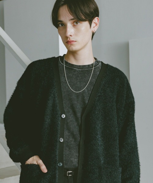 ふんわりとした肌触りが特徴のシャギーニットを使用 ーーー ■ポイント 高見えすること間違いなしのシャギーニットを使用したカーディガンが登場。 柔らかく、触れたくなるような優しい手触りが特徴です。 暖かみのある生地ですが、Vネックデザインにすることでお顔周りはすっきりとした印象に。 リブにはシャギーニットを使用しないことで、メリハリが生まれ、様々なインナーと合わせやすくなっています。 ■素材 毛先に向かって毛量を減らす加工が施す「シャギーカット」という技法を使用し、柔らかく光沢のある独特の風合いに仕上げています。 柔らかく肌触りの良いポリエステル100%素材なので、チクチクしづらく快適な着心地です。 表面の毛羽立ちが空気を含むので、保温性が高く、これからの季節にぴったりの仕上がりです。 ====== ■参考サイズ M:~175cm L:175cm~ ====== ーーー ■スタイリング Vネックデザインなので、シャツやハイネックなどの首元にデザインのあるインナーがおすすめです。 きれいめにもカジュアルにも合わせられるカーディガンは様々なパンツとも相性抜群。 カジュアルに合わせたい方は、デニムやカーゴパンツと合わせて頂くのがおすすめです。 きれいめに合わせたい方は、スラックスと合わせて頂くとよりシャギーの生地感が際立ちます。