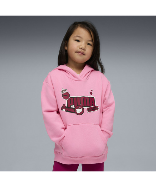 商品名 ガールズ PUMA x ハローキティ アンド フレンズ リラックスド フーディ 104-122cm PUMA X HK&FR Graphic Hoodie 商品情報 ハローキティたちと一緒に、楽しい思い出をつくろう。 「PUMA x ハローキティ アンド フレンズ」から、友情と遊び心が詰まった最新コレクションが登場。ハローキティ、マイメロディ、クロミたちとのステッカー交換をテーマに、ソフトなパステルカラーと大胆なステッカー風グラフィックで、かわいらしさと楽しさを表現しています。お子さまの毎日を彩る、見た目も着心地も嬉しいアイテムです。 PUMA x SANRIO CHARACTERS プーマとハローキティのコラボレーションから、新たなコレクション 「PUMA x SANRIO CHARACTERS」が登場します。今回のテーマは、ハローキティの“ハッピープレイス”。パステルカラーに包まれた世界で、マイメロディやクロミといった仲間たちと一緒に楽しむ思い出や、ステッカー交換のわくわく感を表現しています。コレクション全体を通して、ステッカー風の大胆なグラフィックやグリッターのアクセントを採用しています。 この商品はインポートサイズです。各サイズの詳細は「サイズガイド」をご確認ください。 特徴 リサイクル素材使用:よりよい未来のために、 50%以上のリサイクル素材を使用しています。 詳細 ゆったりとしたシルエットで快適な着心地のリラックスフィット メイン素材:フレンチテリー 長袖 フード付き レギュラー丈 カンガルーポケット フロントラバープリント リブカフス、リブ裾 プーマ x ハローキティ アンド フレンズディテール PUMA Kids:4才から8才のお子様にお勧めのサイズ
