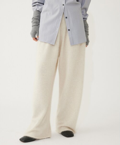 【2025AW】 上質なファーニットが心地よい、ふんわりニットパンツ ■毛足感のあるふんわりとしたニット素材を使用したドロストパンツ。 ■フォックス混の柔らかい肌触りや適度な落ち感に加え、ゆったりとしたワイドシルエットがリラクシーな一着。 ■股上を深めにしているため、着丈が長いときはウエスト部分をひと折りして調節可能。 ■上質なファーニットが大人のシーズンコーデを盛り上げてくれるアイテム。 ■同素材のファーニットスカーフSET プルオーバー(ブランド品番:WGP1052405A0001)や、ファーニットフーディープルオーバー(ブランド品番:WGP1052405A0002)とのセットアップもおすすめ。 【COLOR】 ライトベージュ:優しい印象をプラスする明るいライトベージュ。 グレー:明るすぎず濃すぎずコーディネートに取り入れやすいグレー。 ---------------------------------------------------- 洗濯方法:ドライクリーニング 透け感:ややあり(ライトベージュ) 裏地:なし 伸縮性:あり 光沢感:なし ---------------------------------------------------- ― THE PAUSE(ザ ポーズ) ― 流行を自分らしい発想で切り取ってコーディネートを遊ぶ。 色のグラデーション、ヴィンテージ感漂うワークアイテム・・・ ギャラリーのようなクローゼットの中から 組み合わせをデザインするようにファッションを楽しむ。 そんな、自由なライフスタイルをもつ大人の女性にむけて 新しい感覚のカジュアルスタイルを提案します。 【注意事項】 ・画像の商品はサンプルです。実際の商品と仕様、加工が若干異なる場合があります。 また 、パソコンやスマートフォンのモニター環境などにより、色味が違って見える場合があります。 ・店頭及び屋外での撮影画像は、光の当たり具合で色味が違って見える場合があります。 商品の色味は、スタジオ撮影の画像をご参照ください。 ・入荷状況により、お届け予定が前後する場合があります。 ・お客様への発送が店頭販売より遅れる場合があります。 ・追加生産商品は、一部の店舗、通販で販売中の場合があります。 予めご了承下さい。 【気になるアイテムは、「お気に入り」登録を】 ハートマークをクリックしておくことで、スムーズにお買い物が楽しめます。 ・ラスト一点のお知らせ ・再入荷のお知らせ ・SALEのご案内