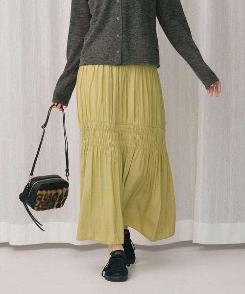 ■WEB限定商品■ 幅広のシャーリングが華やかなアクセントを添えるフレアスカート ■デザイン ウエストと切り替え位置に3段のシャーリングを施したフレアスカート。 たっぷりとした分量がありながらも、シャーリングでボリュームを抑えることで甘すぎない大人らしい印象に。 さらりとした軽やかな生地が、動きのある表情を生み出します。 ウエストは総ゴム仕上げで着心地の良さも◎。 暗くなりがちな秋冬コーデを華やかにしてくれる一着をぜひ。 ■素材 ポリエステル100%のマイクロツイルサテンを使用した、なめらかな風合いと上品なドレープ感が魅力。 ご自宅での手洗いが可能な利便性の高さも嬉しいポイントです。 ■コーディネート すっきりとしたシルエットでどんなトップスにもバランス良く決まる一枚。 スウェットや襟付ニットなど、カジュアルなアイテムに合わせたミックススタイルがおすすめです。 ============================ 裏地:あり 透け感:オフホワイトのみややあり 伸縮:なし 光沢感:なし ケア方法:手洗い可 ============================ 【注意事項】 ※商品に「取り扱い上の注意書き」、「洗濯表示」がございます場合は、使用前に必ずご確認ください。 ※商品画像は、光の当たり具合やパソコンなどの閲覧環境により、実際の色味と異なって見える場合がございます。あらかじめご了承ください。 ※商品の色味の目安は、商品単体の画像をご参照ください。 ※画像の商品はサンプルです。 お問い合わせの際は、ユナイテッドアローズ カスタマーサービスデスクまで下記の品名/品番をお申し付け下さい。 品名:by PE SHERRING FLR SK 品番:16246000004