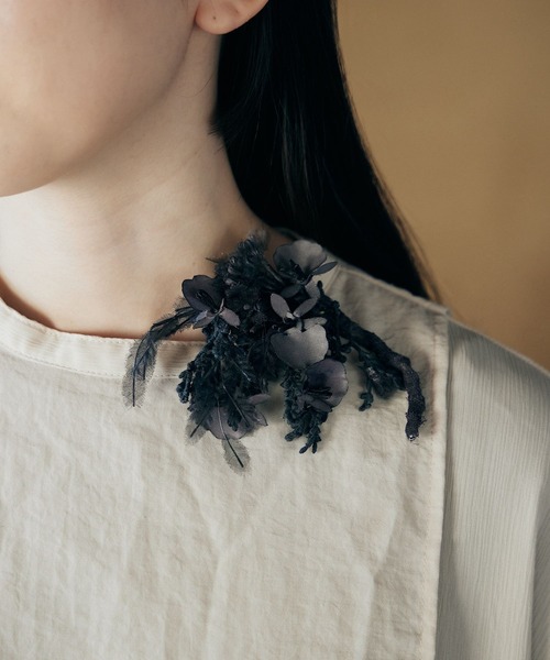 ・*:・ オンシジウムのシリーズ・:*・ ひらひらと舞うように咲くオンシジウムをモチーフにしたシリーズ。透け感のあるリーフを添え動くたびに花が踊るように揺れる姿をお楽しみいただけます。花言葉は「可憐」「一緒に踊って」身につける方の日常も軽やかな華やかさを添えてくれるアイテムです。□ コサージュふんわりと咲き誇るオンシジウムをひとつに束ねたようなコサージュ。胸元やストールに添えると軽やかで華やかな雰囲気を演出します。ホワイトはクリームよりでやわらかで上品にブラックは凛とした印象に。シーンに合わせて選べる表情が魅力です。オンシジウムシリーズピアス / イヤリング / イヤーフック / コサージュ【m.soeur(エムスール)*】 m.soeur(エムスール)は京都発のハンドメイドアクセサリーブランドです。 植物の美しさや生命力を表現しつつもお洋服に寄り添うような、ナチュラルでクラシカルなアイテムを 制作しています。 一点一点人の手で作り上げられる手作りのアイテムは温かみがあり、使い込むごとに味わいをましていきます。 ・*:・ ・:*・ ・*:・:*:・:*・ 【注意事項】 ※こちらは一部手染めを施している商品となります。シミのように見える部分がある場合がございますが、染めの色となり、アンティークな風合いを出すためのものですので、一点一点発色が少々異なった仕上がりとなっております。 ※手作業のため、画像の商品と色、形、大きさが多少異なる場合がございますので、予め御了承下さい。※色落ちする場合がございますので水や雨等には十分ご注意下さい。※大変デリケートなお作りとなっておりますので、お取り扱いには十分ご注意下さい。