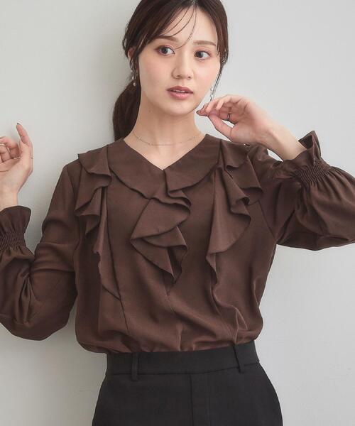 トレンドのラッフルフリル一枚で着映えて可愛いブラウス~POINT~袖口はキャンディースリーブでシャーリングゴムが入っているので腕まくりも可愛くキマります◎ドット柄と無地のアソート展開です柔らかなVネックラインが軽やかでスッキリした印象に◎【素材・機能】さらりとした薄手のジョーゼット生地です※照明の関係により、実際よりも色味が違って見える場合があります。また、パソコン・スマートフォンなどの環境により、若干製品と画像のカラーが異なる場合もございます。【スタッフコメント】・saori(153 )シンプルながら顔まわりが華やかな印象になる着映えブラウスです◎ON・OFF問わず着用可能で、通勤はもちろんおでかにもおすすめです!【25AW NEW ARRIVAL】【25AW NEW COLLECTION】モデル情報:身長163cm B81 W56 H82 着用サイズ:38(M)店舗へのお問い合わせ商品番号:508-84012●製品寸法:36(S):着丈55cm B95cm 袖丈57cm 肩幅37cm38(M):着丈57cm B98cm 袖丈58cm 肩幅38cm40(L):着丈59cm B101cm 袖丈59cm 肩幅39cm42(LL):着丈60cm B104cm 袖丈60cm 肩幅40cm備考:
