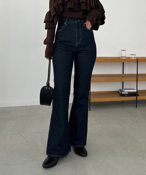 穿くだけでこなれる今季トレンドのフレアデニム 商品ポイント ・今年らしいフレアシルエットのデニム ・膝上から広がるフレアシルエットでスタイルアップ効果抜群 ・レトロでビンテージライクなスタイリングが完成 ・きれいめ見えするインディゴカラーで大人カジュアルな印象に ・ゆるめのニットが増えてくる冬の時期におすすめの1枚 スタイリングポイント ・オーバーなスウェットやニット合わせがおすすめ ・ジャケットやシャツなどきれいめアイテムを合わせても◎ 【スタイリングアイテム①】ベアフリルニット 【スタイリングアイテム②】ケーブルキャンディニット 【スタイリングアイテム③】テンセルウール袖ギャザーロンT ********************** 透け感:なし 裏地:なし 伸縮性:なし 光沢感:なし ********************** ▼洗濯方法 液温は30℃を限度とし、洗濯機で非常に弱い洗濯ができる ※お取り扱い上のご注意 この製品は、非常に色落ち・色移りしますのでご着用の際は次の点に十分ご注意ください。 ・白、淡色系衣料品と重ね合せ着用されますと、摩擦によって色移りします。 ・白、ベージュ系のハンドバッグや靴など、アクセサリーの摩擦によって色移りします。 ・雨の日や汗等、濡れた状態はさらに他の衣料品等へ色落ち、色移りしやすくなります。 ※デニム製品は、汗や摩擦により、衣類・バッグ・イス・車のシートなどに色移りしますのでご注意下さい。 ※汗や水、摩擦により他のものに色移りすることがありますのでご注意ください。 ※撮影場所やお使いのモニター環境により若干お色味が異なる場合がございます。 特にロケの撮影では明るく見える傾向にございます。 ※商品はサンプルで撮影をしております。若干の仕様が変更になる場合がございますので予めご了承の上ご注文くださいますようお願いいたします。 ▼商品のお気に入り登録 完売カラーの再入荷通知や、ラスト1点の通知、セールの通知も受け取ることができます。 ▼ブランドのお気に入り登録 新商品や再入荷など、いち早くブランドのお得な情報を受け取ることができます。