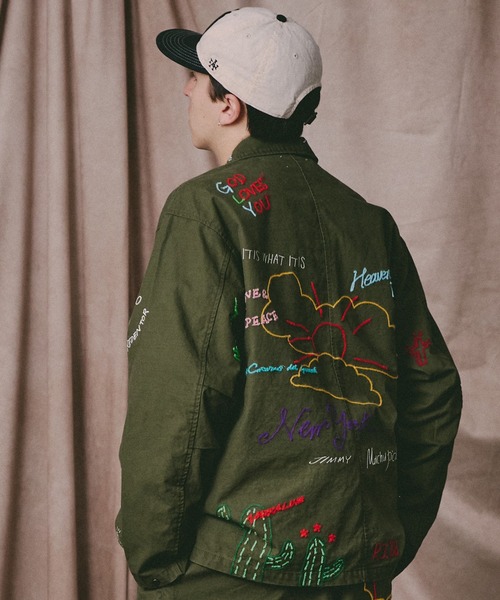 オリジナルのリメイク刺繍が特徴的なファティーグジャケット。バックサテンを使用した定番のファティーグジャケットに落とし込んでおり、加工感もヴィンテージの雰囲気が抜群。【Universal Style Wear】「Daily Play&Work」 ONとOFFをわきまえた大人の男女のアーバンリアルクローズ。 遊ぶときは遊び、働くときは働く、大人の日常を豊かにするスタイルを提案します。 家族との行楽、仕事中、それぞれの「動き」に対応する素材選定、「着る=生活」を意識したまさに日常に寄り添った”服”作りを目指します。 【製品お取り扱い上のご注意】・濡れた状態や強い摩擦により他のものに色移りする恐れがありますのでご注意下さい。・乾いた状態で強く擦られると色移りする恐れがありますのでご注意下さい。・お洗濯は色落ち、移染の恐れがありますので、単独で洗って下さい。・洗濯後は速やかに形を整えてから干して下さい。・濡れたまま他のものと重ねて放置しますと色泣きしたり白いものに色移りすることがありますのでご注意下さい。・繊維製品の為、1~2cmの誤差がある場合がございます。予めご了承下さい。※掲載画像の商品の色味は、屋外や屋内の光の照射や角度により実物と色味が異なる場合がございます。また表示のサイズ感と実物は若干異なる場合もございますので、予めご了承ください。※着用、お取り扱いの際は、商品についている品質表示とアテンションタグを必ずご確認下さい。【商品のお気に入り登録】商品のお気に入り登録をしていただくと、再入荷、残り1点、セールなどの通知を受け取ることが出来ます。【ブランドお気に入り登録】ブランドお気に入り登録をしていただくと、新商品や再入荷、ショップのおすすめトピックスなど、いち早くブランドのお得な情報を受け取ることが出来ます。※ご注文いただいた予約商品のお届け時期の確認は、注文履歴ページより行えます。