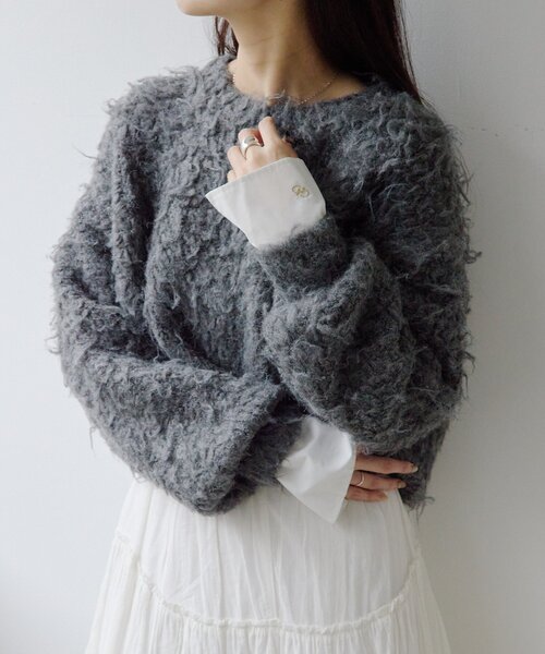 一枚で完成するレイヤードスタイルで、おしゃれ度を格上げ -デザイン- ふわふわとしたシャギーの質感が魅力的なニット。 袖にはシャツ生地をドッキングし、まるで重ね着をしているかのような、こなれ感のあるスタイリングが叶います。 暖かみのあるシャギー素材が、秋冬のコーディネートに柔らかな印象を与えます。 袖口にはブランドロゴの刺繍が施されており、さりげないアクセントに。 カジュアルなデニムやワイドパンツはもちろん、きれいめなスカートにも相性抜群です。 <取り扱い> 可能:手洗い、日陰の平干し、低温でのアイロン、石油系溶剤でのドライクリーニング、ウェットクリーニング 不可:漂白、タンブル乾燥 ※洗濯ネットを使用し、単独で洗濯をお願いいたします。 ※無蛍光洗剤をご使用ください。 ※洗濯により多少縮みます。また洗濯後は形を整えてすぐに干していただくようお願いいたします。 ========================== 【お気に入り登録でお買い物をもっと便利に楽しく♪】 ・「商品のお気に入り登録」で・・・ ラスト1点や再入荷の通知が届きます。登録して頂いた商品だけが対象となる、あなただけのタイムセールが開催されることも! ・「ブランドのお気に入り登録」で・・・ 新商品や再入荷など、いち早くブランドのお得な情報を 受け取ることができますので、ご登録をおすすめします! ==========================