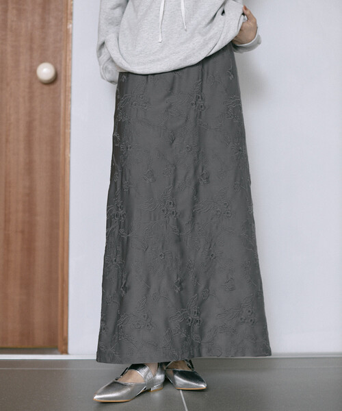 2025 Fall & Winter item クラシカルな刺繍で冬コーデを軽やかに演出するレディライク Iラインスカート ●落ち感のあるフィブリルサテン素材を使用した、上品で軽やかなロングストレートスカート ●オリジナル柄の刺繍を施したクラシカルなデザイン ●後ろスリット入りで足さばきも快適 ●ウエストはスッキリ見える仕様ながら、内側に平ゴムが入っているので楽ちんでストレスフリー ●秋冬のニットスタイリングを軽い印象にまとめ、オールシーズン活躍 おすすめコーディネート 重くなりがちな冬のニットスタイルには、刺繍入りのクラシカルスカートを合わせて軽やかに仕上げるのがおすすめ。トップスをインすればウエスト周りがすっきり見え、レディライクな印象に。後ろスリットと平ゴム仕様で動きやすさも確保されており、カジュアルなニットやシャツ、ジャケットなどと合わせてオールシーズン楽しめます。 ※掲載画像の商品の色味は、屋外や屋内の光の照射や角度により実物と色味が異なる場合がございます。 また表示のサイズ感と実物は若干異なる場合もございますので、予めご了承ください。 ※着用、お取り扱いの際は、商品についている品質表示とアテンションタグを必ずご確認下さい。 【Firsthand / ファーストハンド】 Fashion , Sustainable , Art をテーマに、デザイン性やクォリティー、モノ作りなど、クリエイティブを重視したサステナブルなコンセプトストア。 ここでしか出会えないブランドやアイテム、ここでしかできない実体験、新しくスタイリッシュなカルチャーとファッションをここから発信していきます。 フリークスストア等を構えるデイトナインターナショナルから新たに発信されるブランドです。