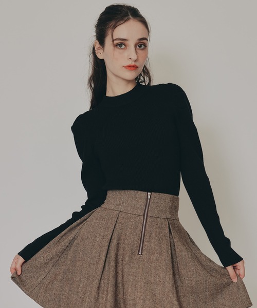秋冬コーデが華やぐ、クラシカルなボトルネックニット程よく体にフィットする細リブ素材に、華やかなパワーショルダーと上品なボトルネックを掛け合わせたボリュームスリーブニットプルオーバー。秋冬らしい深みのあるカラー展開で季節感もたっぷり、コンパクトなシルエットながら、肩の立体感で1枚でも華やかな着映えを叶えるデザインです。フレアスカートやジャンスカ合わせでフェミニンに、ワイドパンツやチェック柄ボトムと合わせてクラシカルなムードも楽しめる着回し力の高いアイテム。ニット特有の伸縮性で着心地も快適、きちんと感がありながらカジュアルにも使える万能トップスです。透け感:[ホワイト]ややあり [レッド・ブラウン・ブラック]なし裏地:なし伸縮性:あり生地の厚さ:普通F:着丈48cm 身幅30cm 肩幅29cm 袖丈64cm