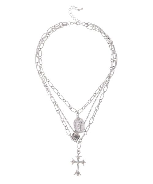 クロスモチーフがポイントの3連ネックレスです。デザインの異なるチェーンが豪華で存在感があり、スタイリングのワンポイントとして取り入れやすいアクセサリーです。