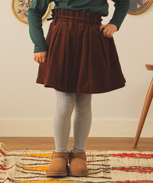 見えない部分までこだわったガーリースカートふんわりしたボリュームがガーリーな膝上丈のショーツインスカート。かぼちゃ型のショーツを付けて、見えない部分も可愛らしく仕上げました。ふくらみのあるソフトな肌ざわりが気持ち良いやや薄手のコーデュロイ素材を使用し、ウエスト部分にあしらったベロアリボンがポイント。薄手、細畝のコーデュロイは、デイリー使いだけでなく、ブラウスなどに合わせればクラシックな雰囲気に。シンプルなコーディネートも品よくまとまり、デイリーからお出かけまで様々なシーンで活躍するひと品です。■ケア方法水洗い可(詳細は商品についている品質表示ラベルをご覧ください)生地の厚さ:普通伸縮性:なし裏地:あり【対象年齢:およそ2~10歳】Girl Model: H108(cm)Size:110※光の当たり具合やパソコンなどの閲覧環境によって実際の色味と異なって見える場合がございます。予めご了承ください。※商品の色味は商品単体で撮影した画像をご参照ください。