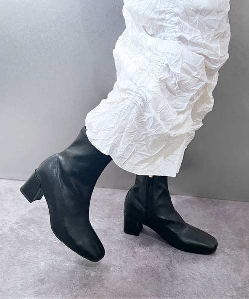 晴れの日も雨の日も、品よく過ごせる晴雨兼用ショートブーツ ストレッチ性のある素材が足に優しく沿い、コンパクトなフォルムで美しくフィット。 高すぎないヒールで歩きやすく、装飾を省いたミニマルなデザインが洗練された印象に。 シンプルなデザインで幅広いスタイルにマッチ。 大人の足元に、さりげないエレガンスを添える一足です。 本底には滑りにくいソールを使用し、機能面も充実。 【着用感】 表記通りのサイズ感ですが、つま先がスクエアトゥなのでややゆったりしていると思います。 ストレッチ素材を使っているのでよどよいフィット感があり、コンパクトに見えるのにきつさはあまり感じません。 ヒールも高すぎず、一日履いていてもそこまで負担はなさそうです。 ※画像の商品はサンプルです。 お届けする商品に仕様・サイズ等の変更が生じる場合がございます。 予めご了承ください。