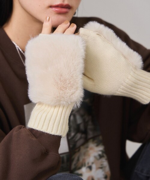 ◆2025秋冬◆ <POINT> ・フィンガーレス仕様なのでスマホやタッチパネル操作も楽ちん。 ・ニット部分はもちもちの肌触りが良い仕上がり。 ・ギフトとしてもおすすめです。 【デザイン・シルエット】 ボリューム感たっぷりなふわふわのファーを採用。 手首部分はリブ仕様なのでしっかりと防寒効果も◎ 【カラー】 女性らしく優しい色味のキナリとベージュ。 様々な色味のアウターにも合わせやすい2色展開です。 【おすすめのスタイリング】 コートの袖先からチラッと見せるバランスで合わせて頂くのがおすすめです。 ※画像の商品はサンプルです。 実際の商品と仕様、加工、サイズが若干異なる場合がございます。