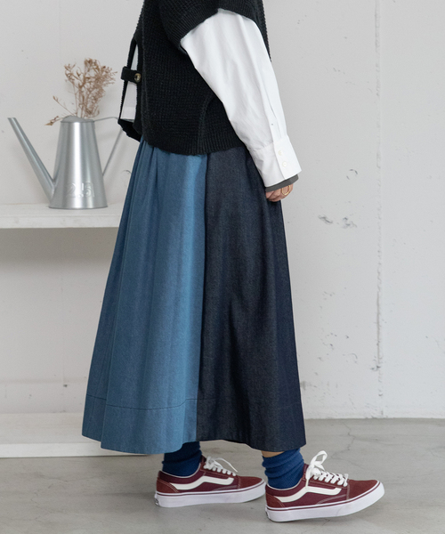 ■Point 前後で異なる色を組み合わせたタックスカート。どちらの色も楽しめる2way仕様です。カジュアルな中にも自然なAラインが女性らしい、使い勝手のいいアイテム。ロンTなどのカジュアルなトップスを合わせても様になります。ウエストはゴムのイージー仕様。両サイドにポケット付き。 -------------------- 透け感:なし 厚さ:普通 伸縮性:なし 裏地:なし -------------------- ◆注意事項◆ 可能な限り実物に近いカラーにて掲載しておりますが、ご使用のパソコンやスマートフォンなどの端末の環境によって、実際の色味と異なって見える場合がございます。予めご了承ください。 サンプルで撮影している商品もございます。その場合、実際の商品とは色味・仕様が異なる場合がございますので、予めご了承ください。 POU DOU DOU プードゥドゥ ひと手間加えた存在感のある「日常着」 いつまでもときめきとかわいいを忘れない方への 愛着を持てるワードローブ = お気に入り登録がおすすめ!= お得な情報をいち早くお届け致します。 アイテムをお気に入り ⇒ SALE START / 完売COLOR再入荷 / LAST1点 etc... ブランドをお気に入り ⇒新商品 / 再入荷 /クーポン・セール情報 etc...
