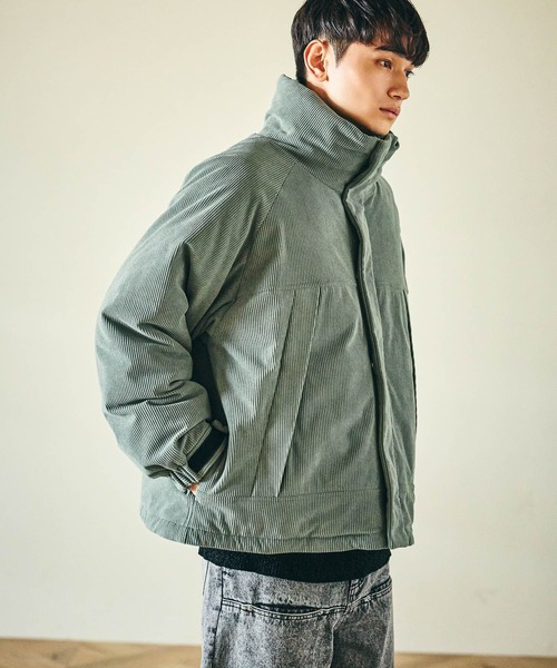 【デザイン・特徴】ボリュームのあるシルエットが特徴で、トレンド感あふれるデザインです。カラーはどれも落ち着いた色合いでコーディネートしやすいです。シンプルながらも存在感のあるデザインが魅力です。コールの立体感のある表面感がポイント。【素材】表地、裏地、中わたすべてがポリエステル100%で、軽くて暖かい着心地が特徴です。リブ部分は伸縮性がありフィット感も抜群です。【スタイリング】ボリュームのあるシルエットを活かして、細身のパンツ、シンプルなインナーと合わせてスタイリッシュにまとまります。ワイドなパンツを合わせればキレイ目なストリート感のあるスタイルになります。
