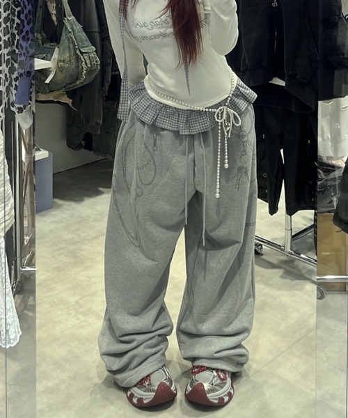 ▪アイテムポイント トレンドの韓国ストリート×Y2Kスタイル☆ ガーリー派のマストアイテム☆ フロントにキーチェーンをモチーフにしたグラフィックをプリントし、 バックポケットにはアイレットをあしらった十字架デザインを落とし込んだ存在感抜群のスウェットパンツ☆ ストリート感あふれるルーズなシルエットに、裾のドローコードでシルエット調整も可能◎ Tシャツやスウェットとの相性はもちろん、ジャケットとのミックススタイルにもはまる万能な1本 シーズン問わず活躍する、ユニークかつ実用性あるアイテム☆ エンジェルコアやウィッシュコア、バレエコアにもおすすめアイテム♡ ※着用画像はフラッシュの加減で実際の製品と色味等が異なる場合がございますので、詳細のズームアップ画像をご確認ください。 ※サイズは、測定方法と測定者によって誤差があります。素材に応じて1cm~3cmまでの差も生じます。予めご了承ください。 【FANCY CLUB/ファンシークラブ】 FANCY CLUB(ファンシークラブ)は、NASTY KICK(ナスティーキック)のガールズラインで、韓国のアーティストが続々着用し注目を浴びているブランドです。 日本ではまだ知名度は低いですが、リーズナブルな価格帯と蝶々モチーフのデザインが特徴のブランドです。 【SELECT BRANDS】 東京、大阪、名古屋、福岡にショップを構えるセレクトショップ "Never mind the XU”(ネバーマインドザエックスユー/エックスユー)と”Chikashitsu +”(チカシツプラス)のバイヤーが韓国、中国をはじめとしたアジア圏やヨーロッパなど世界各国から多彩なデザインを持つ新鋭ブランドを独自の感覚でセレクトしました。 ユニセックス、ストリート、モード、カジュアル、綺麗目、シンプル、リラックススタイルなど様々なスタイリングをお楽しみいただけます。 “自分らしさ” の表現が必ず見つかる。そんなラインナップで一期一会の高揚を感じながらお買い物をお楽しみください。 【気になる商品はお気に入り登録がおすすめ】 ▼商品をお気に入り登録!(♥マークをクリック) 完売商品の再入荷やラスト1点の通知、セール開始時にお知らせ! ▼"XU/Chikashitsu+"をお気に入りブランドに登録! 新商品や再入荷など、ブランド最新情報をいち早くお知らせ! 是非、ご活用いただきお買い物をお楽しみください◎