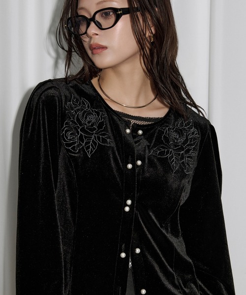 "Ezick"【design】フロントに大胆に施されたローズ刺繍が目を惹くカーディガン。高級感のあるベロア素材で、上品な一枚に仕上げました。ボタンがパールになっており、煌めくさりげないワンポイントになります。タックショルダーでさりげないパフ感で、少しの甘さを演出します。ボディはシャープなデザインで、華奢見えする印象です。モードスタイルはもちろん、ドレスの羽織としても着用できるアイテムです。【stylingitem】・2way corset リングジップワイドパンツ(586261)・Elegant volume sleeves セットキャミドレス(492350)・nuance tulle coat ニュアンスチュールミドルコート(595725)--------------------------------------------------伸縮性/なし厚み/普通裏地/なし透け感/なしポケット/なし---------------------------------------------------※商品名とタグの記載名が異なる場合がございますが、商品に問題はございません。※サンプルにて撮影をしておりますので、実際の商品とは色味・仕様や加工・サイズ等が若干異なる場合がございます。予めご了承くださいませ。※商品の取り扱い方法につきましては、タグ等に記載されている「取り扱い上の注意」「洗濯表示」をご確認ください。※屋外での撮影画像は、光の当たり具合で色味が違って見える場合があります。あらかじめご了承ください。なお商品の色味は、スタジオ撮影の画像をご参照ください。 ....................≪INFORMATION≫......................▶Ezick(エジック)これからの時代を生きる女性が、自分らしさをもっと自由に楽しみ、磨き上げていくためのレディモードブランド。今の気分をMIXさせながらも自分らしさを表現できる、女性の等身大の美しさと憧れを提案します。-オフィシャルInstagramにて最新情報や限定情報を毎日更新中!-▼ 商品のお気に入り登録 ▼完売カラーの再入荷やラスト1点、またプライスダウンしたセール通知を受け取ることができます。ぜひご登録ください。▼ ブランドのお気に入り登録 ▼新商品や再入荷など、ブランドのお得な情報をいち早く受ける事が出来ます。ぜひご登録ください。※ご注文いただいた予約商品のお届け時期の確認は、注文履歴ページより行えます。