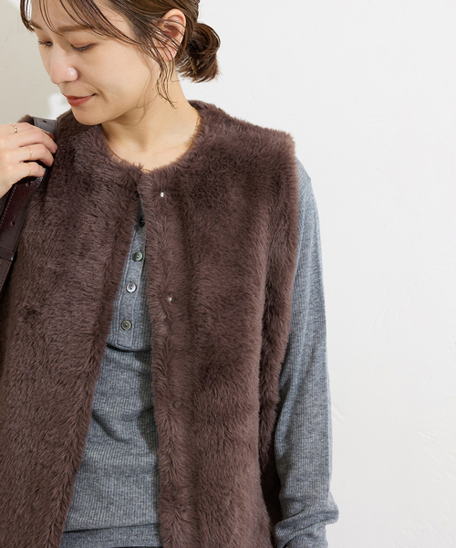 【2025 AW】JOURNAL STANDARDご好評につき、ダブルフェイスフェザークルーネックベストが今シーズンも登場。※旧品番:25080400353040の追加商品です。※若干の仕様変更がある場合もございます。※旧品番はすでに店舗に入荷しております。在庫数等は店舗にお問い合わせ下さいませ。ふわっと心地よいフェザー素材が素敵な着映えベスト。表がナイロンフェザーヤーン、裏がポリエステル糸のダブルフェイス編のベスト。ナイロンの柔らかいフェザーヤーンで程よい毛足で着やすく、秋はカットソーやシャツに羽織ったり、冬はコートの中にインし足りと色々なスタイリングが楽しめます。シーズン通して使えるので買っておいて間違いなしのアイテムです。フロント隠しのドットボタンでキレイ目仕様、ヒップの隠れる丈感でボトムを選ばないので色々なシーンで活躍する主役級のアイテムです!※同シリーズで下記品番もございます。ダブルフェイスフェザークルーネックカーディガン(品番:25080400354040)**********************透け感:なし裏地:なし伸縮性:あり光沢感:なし生地の厚さ:普通**********************【スタッフ着用コメント】《スタッフO》年齢:30代前半/身長:162cm/体型:普通/普段サイズ:M/着用サイズ:フリーサイズ感:程よいゆとりで、丈は少し長めです。素材感:柔らかなフェザー素材で、裏はポリエステル糸なのでチクチク感はありません。着心地:軽い着心地。手持ちのアイテムに羽織るだけで着映えします。※あくまでも個人の感想です**********************※取り扱いについては、商品についている品質表示でご確認ください。※照明の関係により、実際よりも色味が違って見える場合があります。またパソコン・スマートフォンなどの環境により、若干製品と画像のカラーが異なる場合もございます。※商品の色味は、商品アップ画像をご参照ください。本体:ドライクリーニング