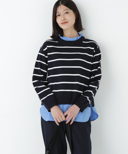 一枚で様になる、フリルブラウスを重ね着したような布帛ドッキングニット 【デザインのポイント】 フリル襟ブラウスを重ね着したようなデザインの布帛ドッキングニットです。 襟元と裾からのぞく布帛が価値観のあるデザイン。襟は取り外し可能なので、シーンに合わせて印象を変えていただけます。 【素材のポイント】 ウール混の薄手ニット。さらりとした着心地で長いシーズン着ていただきやすい肉感です。 【おすすめコーディネート】 1枚で様になるデザインニットなので、シンプルなボトムと合わせるだけでスタイリングが完成するのが嬉しいポイントです。 【お買いものをよりお楽しみいただく為に】 ■商品のお気に入り登録 再入荷・残り1点・セールの通知を受け取ることができます。 ■ブランドのお気に入り登録 新商品・再入荷/タイムセールやクーポンなどの ブランドの情報を受け取ることができます。 ------------------------------------------- 【human woman】 1998年よりスタートした”フレンチトラッド”をベースにした大人な女性のためのカジュアルブランド。 素材や縫製にもこだわってつくられた上質な日常着は、長い時間大切にお使いいただけるようにお作りしています。 約20年の歴史の中で、「数年着続けても安心感があるお洋服」と多くの方に高いクオリティを認められてきました。 ベーシックなアイテムにさりげなく加えたトレンド感で、「私らしいカジュアルスタイル」を見つけてみませんか。 「カジュアルが好き」「少しだけトレンドも取り入れたい」 「大切に着たい」「私らしくいたい」そんな思いをかなえるお洋服をhuman womanでは提案しています。 -------------------------------------------