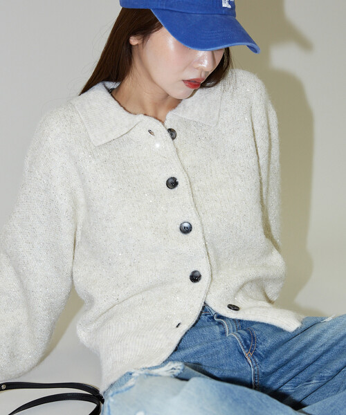 2025 Fall & Winter item 上品なきらめきで魅せる、スパンコールプレーティングポロカーディガン ●ニット全体に細やかなスパンコールを散りばめ、シンプルなシルエットに華やかさをプラス ●動くたびにきらりと光るラメで一枚で主役に ●コンパクトな丈感に程よくゆとりのある身幅で、羽織るだけで抜け感のあるトレンドスタイルを演出 ●大きめのポロ襟と存在感のあるフロントボタンがクラシックな雰囲気を漂わせるデザイン ●スパンコールは肌に触れないプレーティング仕様で編み立てているため、見た目は華やかでもチクチク感のない快適な着心地 ========== ◆おすすめコーディネート ワイドパンツやスラックスと合わせれば、モードな雰囲気漂う洗練コーデに。 デニムと合わせれば抜け感のある大人カジュアルが完成し、タイトスカートやワンピースに羽織ると女性らしさを引き立てながら華やかに。 韓国ファッション風に、ニット帽やボリュームスニーカーをプラスしてストリートライクに仕上げるのもおすすめです。 --- ※商品の色味は、商品詳細画像をご確認ください。 ※掲載画像の商品の色味は、屋外や屋内の光の加減により実物と異なる場合がございます。また表示のサイズ感と実物は若干異なる場合がございますので、予めご了承ください。 ※着用・お取り扱いの際は、商品についている品質表示とアテンションタグを必ずご確認ください。 【PUBLUX/パブリュクス】 その瞬間を大切に、なりたい自分になれたら。 いま着たいリアルクローズを自由な感性で提案する、 ジェンダーレスなストリートブランドです。
