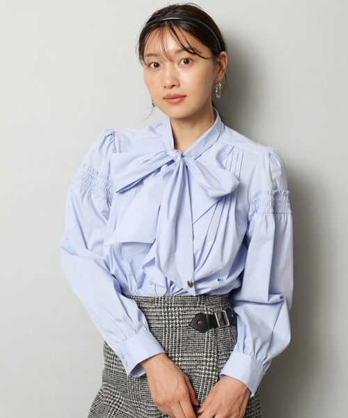 存在感のあるボウタイが華やかに魅せるブラウス。袖シャーリングや前身頃のタックデザインが立体感のあるフォルムを生み、女性らしさを引き立てます。ハート型のチャームをアクセントに、一枚やジャケットと合わせたレイヤードスタイルなど、オンオフ問わず活躍できるアイテムです。【ご注意】※撮影照明の関係により、実際の商品と色味が異なって見える場合がございます。また、パソコン・スマートフォンなどの環境により、製品と画像のカラーが異なる場合もございます。予めご了承ください。※商品画像はサンプルのため、色味やサイズ等の仕様に変更がある場合がございますので、予めご了承ください。