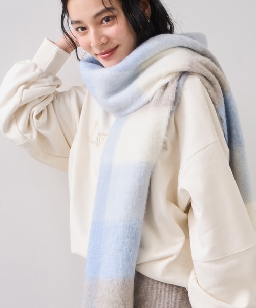 毎年大人気!スタイリングのアクセントになる華やかマフラー。◆2025秋冬◆ <POINT> ・なんといってもふわふわな触り心地◎ ・巻いた時にいろんな色が見えるのがポイントのブロックチェック。 ・巻いた時のボリュームが程良くなるよう厚みや密度、長さにこだわりました。 ・太めのフリンジは巻いた時にアクセントになります。 ・リサイクルポリエステル糸を配合し地球に優しいサステナブルな素材を使用。 ・静電防止加工で取り扱いやすいのが嬉しいポイント! ・プレゼントにもおすすめです。 【素材】 再生ポリエステル糸を配合したふわっと柔らかな素材感。 静電防止加工。 【カラー】 なじみの良いチャコール系チェック・爽やかなブルー系チェック・優しいイエローチェック、そしてブラウン×ブルーが新鮮で大人っぽい新色を加えての4色展開です。 【おすすめのスタイリング】 チェックが華やかさを演出してくれるので、シンプルなコーディネートのアクセントにおすすめです。ボリュームを出して顔が埋もれるように巻いたり、サッと長めに一巻きでもお洒落にきまります◎ ※画像の商品はサンプルです。 実際の商品と仕様、加工、サイズが若干異なる場合がございます。 ※素材の特性上、表面の毛羽が着用時の摩擦によって抜けたり、他の衣服に付着することは避けられません。組み合わせの衣服などにご注意ください。 ※付着した毛羽はブラシをかけることで除去することができます。