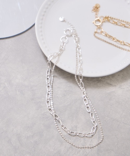 ◆2025秋冬◆<POINT>・2連のデザインなので着けるだけできまります◎・華奢目なダイヤレーンを採用することで、控え目に上品に輝いてくれます。【カラー】ゴールドとシルバーの2色展開です。【おすすめのスタイリング】お仕事シーン(通勤コーデ/オフィスカジュアル)にはもちろん、セレモニーシーンにもお使いただけます◎ハイゲージニットや首回りが開いたトップスと合わせて頂くのがおすすめです。※画像の商品はサンプルです。 実際の商品と仕様、加工、サイズが若干異なる場合がございます。