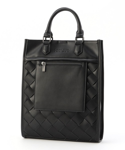 ■デザイン手持ち用のハンドルに加え付属のショルダーベルトを取り付けて肩掛けも可能なスクエア型2WAYバッグ。今季はハンドル付けに金具を使用して使用感を向上させました。前後の編み込みデザインを最大のポイントとして、側面は編み込みなしのフラットな仕様で見た目にメリハリをプラス。フロント面には吊り下げタイプのファスナーポケットをあしらいアクセントにしています。モードスタイリングにもピッタリなトレンド感満載のバッグです。■サイズA4サイズ対応のメインポケットに加え、内側にはパッチポケット、フロントにはファスナーポケットを設けて仕分けも容易です。マチ幅は細めに設定してスタイリッシュな印象に仕上げました。■素材上品なツヤ感を持ったなめらかな手触りのスムース合成皮革を使用。■注意点・この製品はポリウレタン樹脂コーティングをした合成皮革を使用しています。このポリウレタン樹脂は年数の経過とともにヒビ割れ・剥離等の経時劣化が生じます。現在の技術ではこれらの現象を止める事は難しく、ご使用の際は予めご了承ください。・この製品は生地組織の性質上、引っ掛けやすくなっております。引っ掛けた場合の補修は、非常にむずかしくなりますので、着用時、保管時の取り扱いには十分にご注意ください。※画像の商品はサンプルです。実際の商品とは仕様・加工・サイズ・素材が若干異なる場合がございます。※ 掲載画像の商品の色味は、撮影場所や光の当たり具合などにより色味が異なって見える場合がございます。商品の色味は、生地アップの画像をご参照ください。また、お客様のお使いのPC・スマートフォン等のモニター環境などにより色味が異なって見える場合がございます。予めご了承の上ご注文ください。