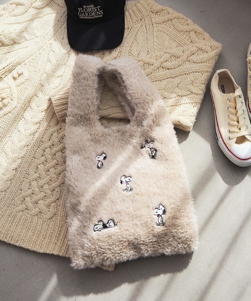ふわふわで毛足が長めのカーリーファーにSNOOPYや仲間たちの刺繍を施したファーバッグ。500mlペットボトルや長財布も持ち運び可能。 サイズ/H330(510)×W280×D100mm 持ち手180mm ◎重さ/約310g ●商品についてのお問い合わせは、下記の品名・品番をお申し付けください。 品名:PEANUTS ファーショッパートート 品番:HMG-BAG396