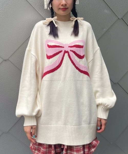 大きなリボンモチーフが目を惹くニット。着心地の良いコットンアクリル糸を使用。程良い厚みで着心地も◎5ゲージで、通常より度詰めで編み立てたしっかりとした肉感。ゆったりとしたサイジングで、ワンピースとしてもトップスとしてもご着用いただけます。・・・・・・・・・・・・・・・・・・・・・・・透け感:なし・伸縮性:あり・生地の厚さ:やや厚め・裏地:なし・・・・・・・・・・・・・・・・・・・・・・・アイボリー、ピンク、レッド/赤の3色展開【サイズ展開】・FREE(フリーサイズ)#カジュアル#ガーリー#リボン#キャンスト#キャンスパ#CND●Candy Stripper/キャンディストリッパー●-BRAND CONCEPT-NO RULE, NO GENRE, NO AGE年齢や性別にとらわれず、自由に自分を表現出来る服【お買い物をもっとお楽しみ頂くために】▼商品のお気に入り登録▼完売カラーの再入荷通知や、ラスト1点通知、プライスダウンしたセール通知も受け取れる♪▼ブランドのお気に入り登録▼新作や再入荷等、いち早くブランドのお得な情報が受け取れる♪