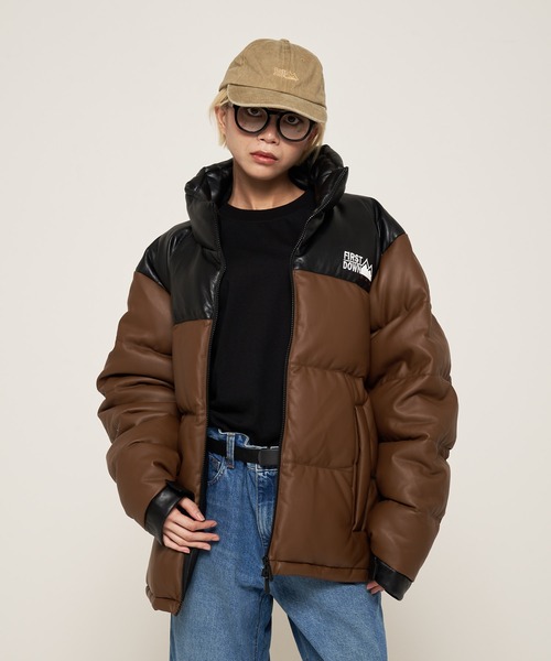 【FIRST DOWN USA】バブルダウンジャケット カラーレザー | BUBBLE DOWN JKT COLOR LEATHER 【デザイン】 FIRST DOWNのアイコンであるバブルダウンジャケットにフェイクレザーを採用し、無骨さと洗練さを両立したモデル。ベーシックなルックスに重厚感と都会的なムードを漂わせる。計算されたボリューム感の立体シルエットは、着るだけでスタイルが完成する存在感を演出。 【素材】 表地には滑らかな光沢とリアルな質感を持つフェイクレザーを使用し、上質さと扱いやすさを両立。中綿は高品質といわれる700フィルパワーのダックダウン(ダウン90%、フェザー10%)を採用。軽量ながら優れた保温性を実現し、真冬の寒さにも対応します。裏地には、静電気防止加工を施した20デニールナイロンを採用。しっかりと冷気をシャットアウトしながらも、見た目とは裏腹に重たさを感じさせない快適な着心地です。 【コーディネート】 シンプルな無地インナーやボトムスと合わせることで、アウターを主役としたコーディネートが完成。スニーカーでストリートに、ブーツでモードにと、スタイリングの幅も広がります。フェイクレザーの艶感があるため、トーンを抑えたアイテムと組み合わせれば上品さもプラス。インパクトのあるレッドやグリーン、落ち着いたブラックやブラウンで、気分やシーンに合わせたスタイルが楽しめます。 【チャート】 ダウンボリューム:あり シルエット:スタンダードフィット ストレッチ性:なし 光沢感:ややあり ※自社ブランド比較 【SIZEについて】 FIRST DOWN USAについては全体的にやや大きめのサイズスペックになっております。チャート欄のシルエットに関しては、自社比較にて明記しております。 【品番】 F942002 【FIRST DOWN/ファーストダウン】 地下鉄の車内をタグやグラフィティが埋め尽くし、アメリカ有数の犯罪多発都市として不穏なムードと緊張感が立ち込めていた80年代のニューヨーク。FIRST DOWNはかつてのこの地で誕生し成長を遂げたブランドです。決して良好とは言えない環境下でも多くの人々が強いエネルギーを持ち、音楽やストリートカルチャーの隆盛を支え、アートシーンにも大きなムーブメントがたくさん生まれた時代。彼らが東海岸の極寒の冬を凌ぐのに、羽毛がぎっしりと詰まったFIRST DOWNのアウターは最適なギアだったのです。