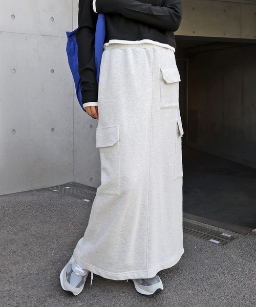 コットン混のサラッとした肌ざわりが心地よい、新作《裏毛・カーゴスカート》が入荷しました。ANME定番スウェット素材の質感はそのままに、軽やかに仕上げたやや薄手タイプ。暖かみと風合いを出すため、綿高混率・表側は綿のみで仕上げました。フロントポケット&サイドのカーゴポケットは、全体のバランスにこだわったデザイン。「ありそうでない」スウェット素材のカーゴスカートとして、リラックス感とミリタリー要素を両立しました。楽ちんなゴム仕様のウエストは、内側に調節可能なドローコード付き。後ろスリットのない仕様で、安心感のあるデザイン。レギンスやタイツを重ねても気にならず、広がりすぎないAラインシルエットで足さばきも快適です。サラッと着用するだけで簡単にスタイリングが決まる、おすすめアイテムです。[同素材の展開アイテム]・裏毛スウェットタックワイドパンツ(商品番号:2600079)・裏毛スウェットハーフパンツ(商品番号:2600080)・裏毛スウェットカーゴパンツ(商品番号:2600096)※裏地なし※撮影時のライティング、ご覧になっているモニター・PC環境により実際の商品と色味が異なって見える場合がございます。ご了承の上お買い求め下さい。素材:綿85% ポリエステル15%≪備考≫伸縮性:あり透け感:なし生地の厚さ:やや厚手肌ざわり:さらっとしているその他:裏毛320g生産地:中国洗濯機:可 ドライクリーニング:不可 ウェットクリーニング:可ANME アンメ春 夏 春夏 夏服 春服秋 冬 秋冬 秋服 冬服スウェットスカート トレーナー