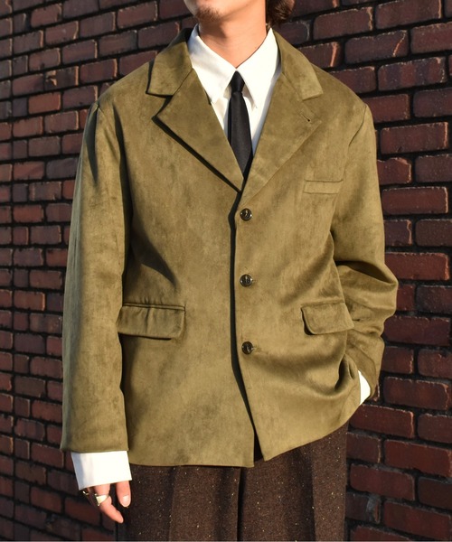 [商品概要] カウボーイ由来のスエード素材が、 次第にタウンユースに昇華された1950年代。 そんな当時のスエードテーラードジャケットに 着想を得て再構築。 クラシックな仕立てにラフさや野性味を加える 相反する2つの特徴を併せ持つ。 フェイクスエード特有の厚みある質と。 使い込んだような深みを見せる起毛感は ラフであり重厚。 無骨だけど上品。 その矛盾を楽しんでほしい一着。 [着用モデル] 175㎝/size M 【M】 肩幅 = 49cm 身幅 = 54cm 着丈 = 74cm 袖丈 = 59cm 【L】 肩幅 = 52cm 身幅 = 58cm 着丈 = 76cm 袖丈 = 61cm