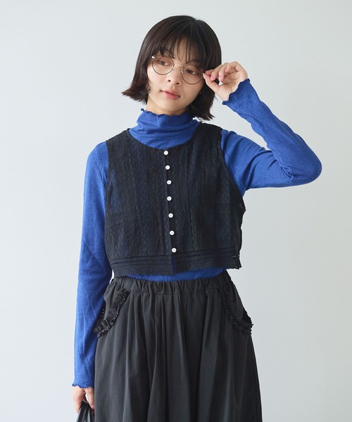 どこかなつかしさを感じるレースパッチワークシリーズ。100種類以上のレースから選びぬいたさまざまなレースたちを組み合わせています。レースのみで構成されたぜいたくなベストは、日常づかいからとくべつな日まで、アクセサリーのような感覚でいろんな場面で着ていただけたらうれしいです。============================透け感:あり裏地:なし伸縮性:なし光沢感:なし============================※素材の特性、お取り扱いの注意水洗い可・・・中性洗剤使用アイロン可・・・あて布使用・濃色の場合、湿った状態での摩擦や長時間放置しますと他の物に色移りする事がありますのでご注意下さい。・この製品には、レースを使用しております。レース部分を乱暴に扱いますと破損しやすいので、強い摩擦や引っ掛け等には充分御注意して下さい。・デリケートな素材ですので、激しい運動や極度な力が加われば、目が開いたり目寄れ(織糸が滑り、目が開く)する性質をもっています。bulle de savon(ビュルデサボン)BRAND CONCEPT女性、誰もが ふっと子供の頃を思い出し 少女のような気持ちに戻れる服。 bulle de savon =シャボン玉の事 石鹸の泡とか、においなど、 懐かしい感じ。設立年月日 1994年8月※ホワイト、ブラックはサンプルです。実際の商品と仕様・加工・サイズ等が若干異なる場合がございます。※モデルの着用画像は光の関係で商品の色味が若干異なります。※取り扱いの注意については取り扱い表示をよくご確認の上、着用をお願いいたします。※工場の生産の都合上、入荷の時期が前後する場合がございます。ご了承ください。