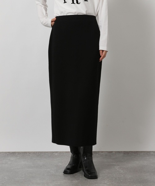 Mサイズはフリーサイズ、Lサイズはウエストはそのままにやや長めの着丈(+5cm)で。 細身のシルエットが上品な雰囲気のナロースカート。 タイト見えでも足先に向かってゆとりのあるシルエットで窮屈さ少なく着用いただける1枚です。 ウエストにはゴムを使用し着脱が楽なのもポイント。 【素材】 12ゲージのハイゲージニット素材。 肌触りが滑らかで、上品な印象の編地が特徴です。 [マシンウォッシャブル] ご家庭の洗濯機でお洗いいただけます [静電気軽減] 静電気を軽減させる素材を使用しています [毛玉軽減] 毛玉の発生を軽減する加工を施しています 【スタイリング】 トップスのデザインを選ばずスタイリングできるアイテムです。 カジュアルにもフェミニンにも合わせやすく、オーバーサイズのパーカーとの相性も〇